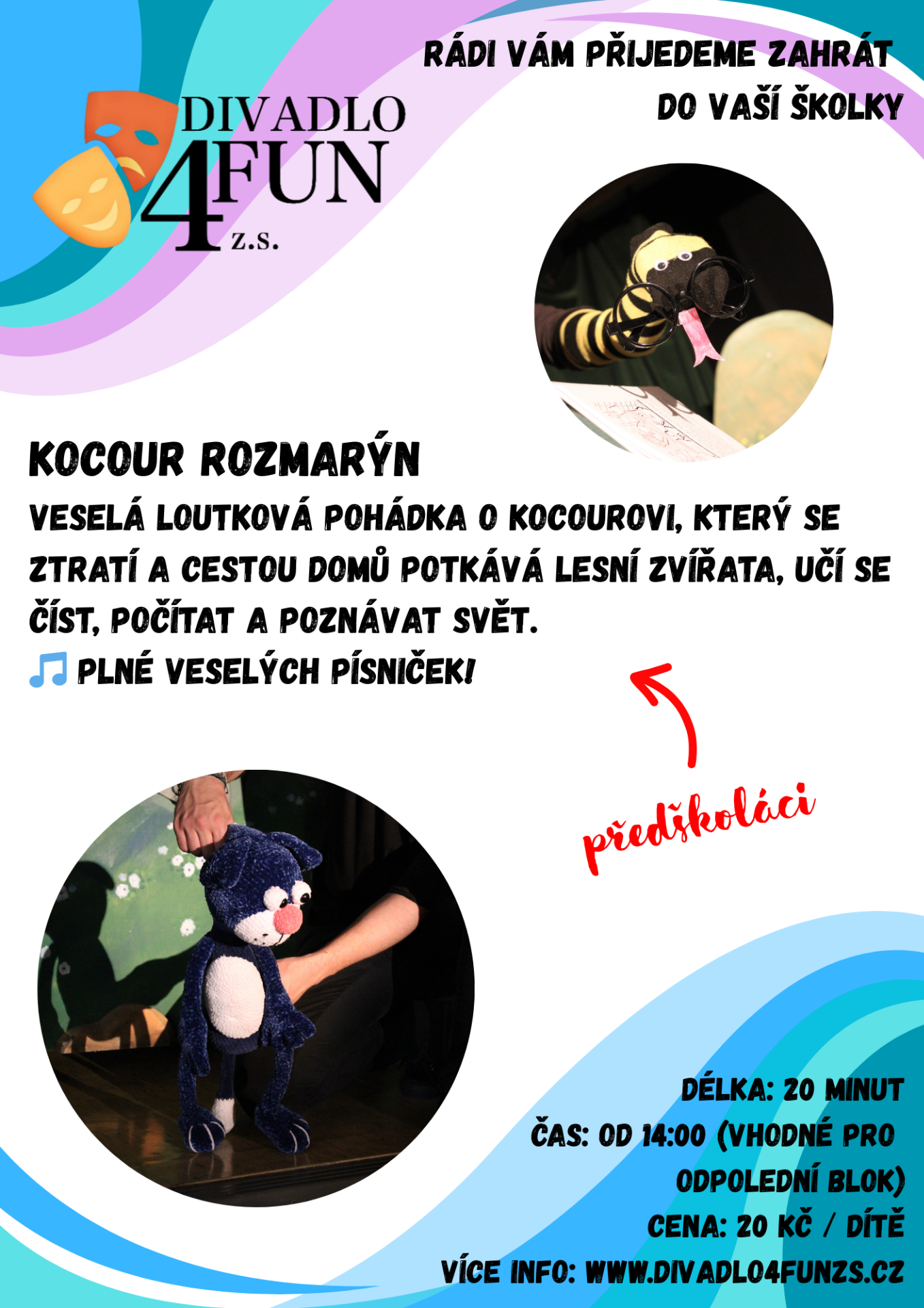Chcete dětem přinést radost z divadla? Divadlo4fun rádo přijede přímo k vám! Stačí nás kontaktovat a vše domluvíme jednoduše a rychle.