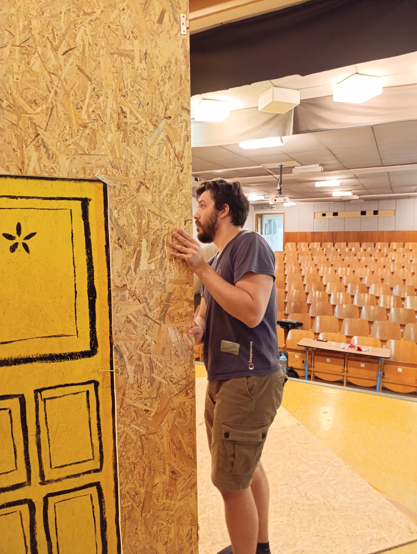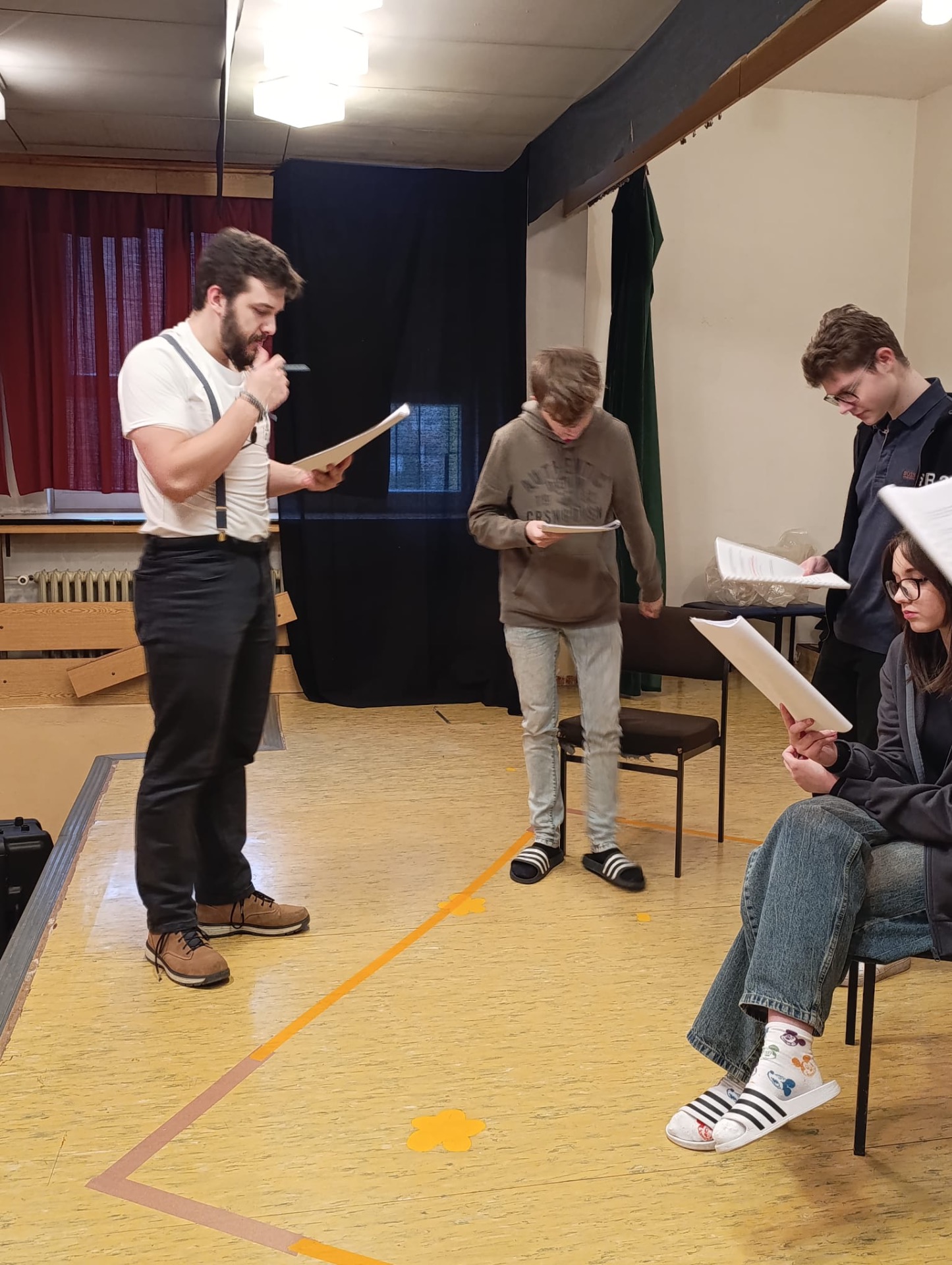 Během zkoušení se také musela vyrobit scéna, sehnat rekvizity a vytvořit plakát. Tvorba scény padla na našeho režiséra Lukáše, který obsadil školní dílny mohutnými deskami a několik dní trávil měřením, řezáním, broušením a několika dalšími řemeslnými pracemi. Snad poprvé měla jeho tvorba v dílně přesné měření, protože jak je známo, Lukáš takřka všechny kulisy z dřívějších představení dělal jen od oka. Tvrdí, že jako učitel matematiky má na tyhle věci talent, ale zkuste někdy navštívit naše sklady a uvidíte, že talent mají kulisy, protože ještě drží pohromadě.